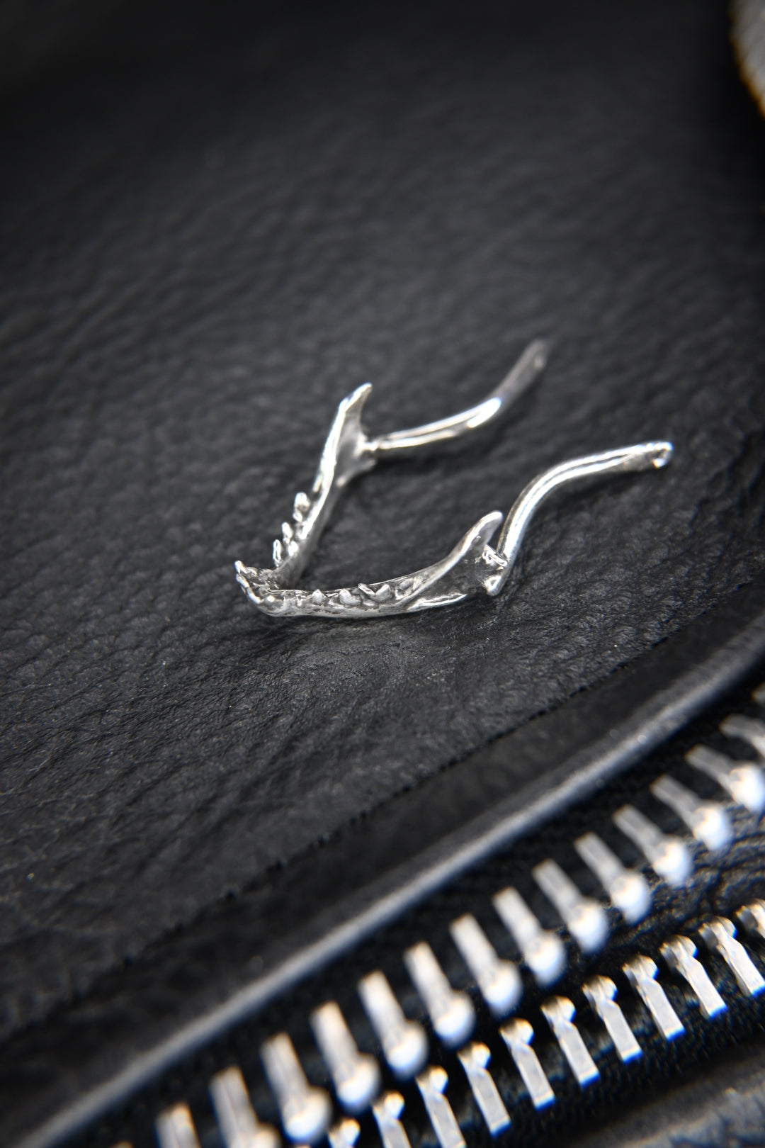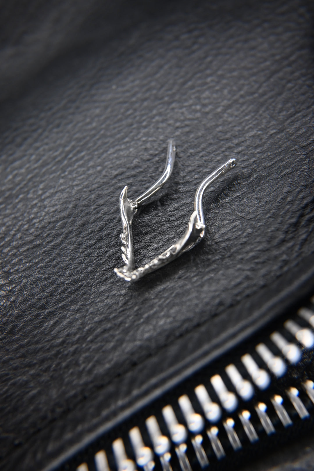 A scaled-down mandible, cast in solid sterling silver, gives this piece its striking profile. Their curved forms cradle your ring safely against your chest, no need to remove the chain to slip it on or off. A quiet companion for busy hands— whether you’re working, creating, or conjuring, your ring stays close.