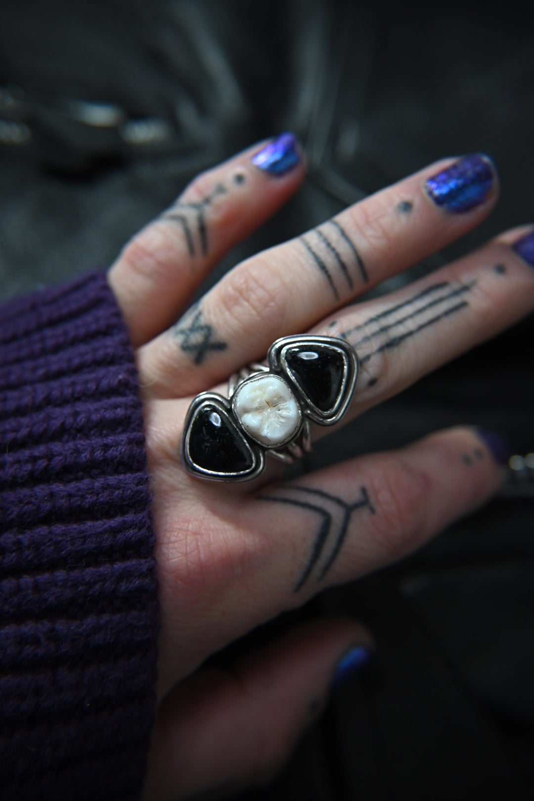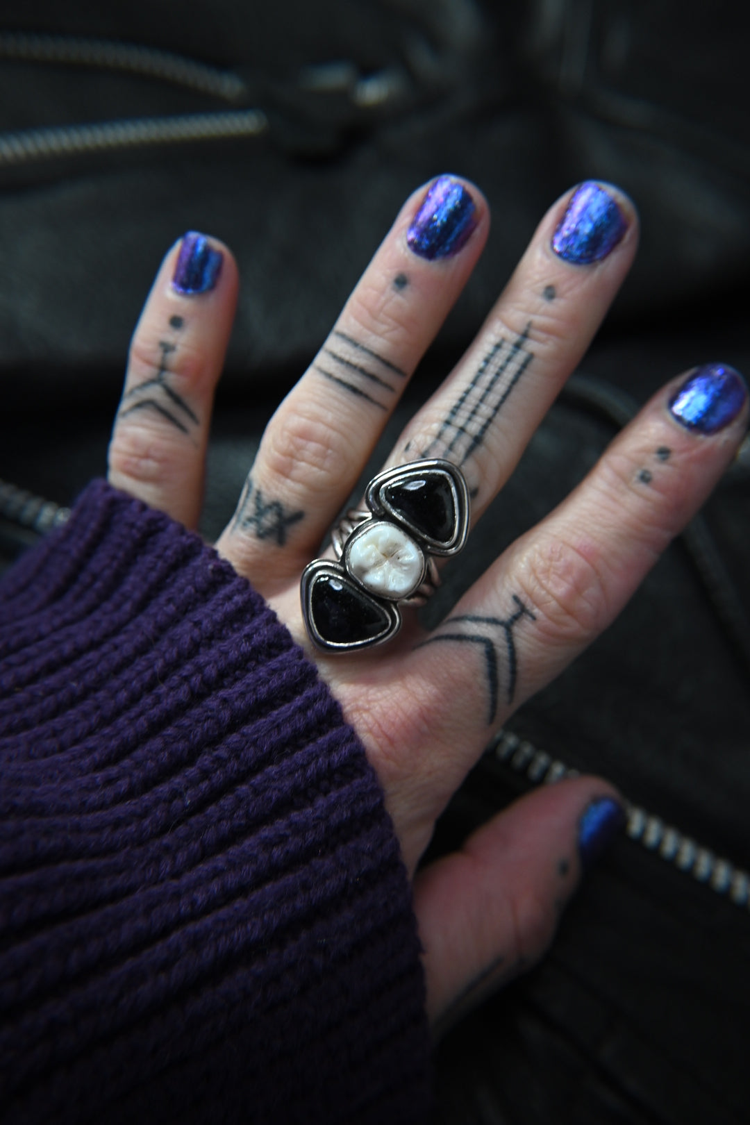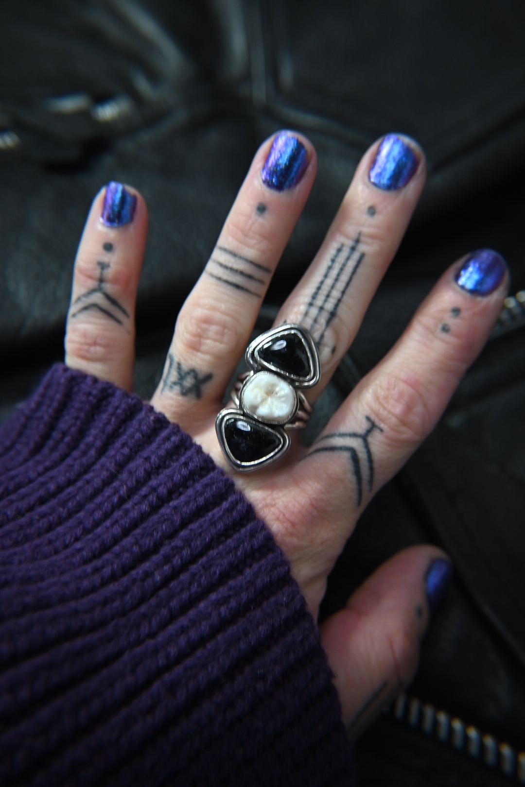 Tooth & Black Tourmaline Ring