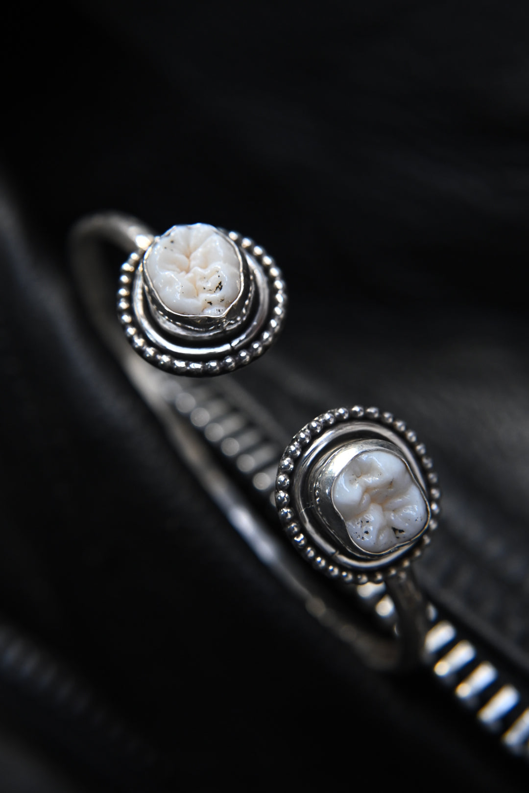 100% fine and sterling silver with added patina to bring out the details of each piece