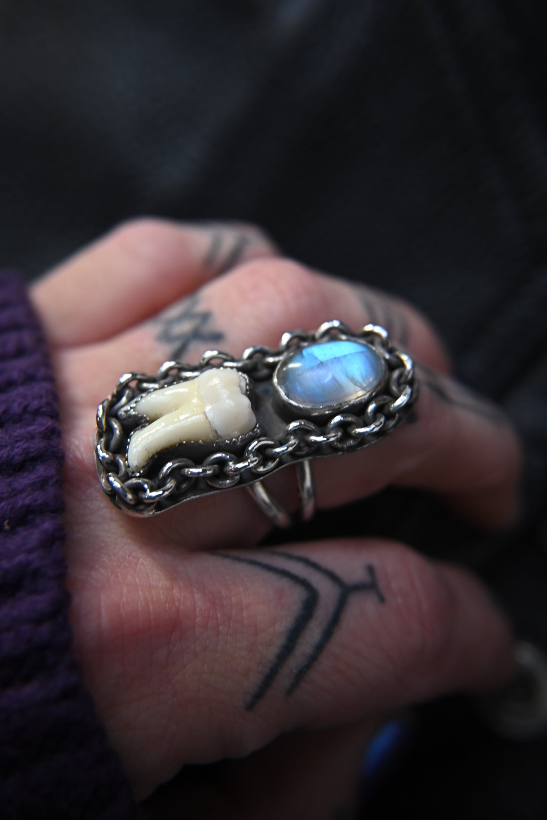 Tooth & Moonstone Ring