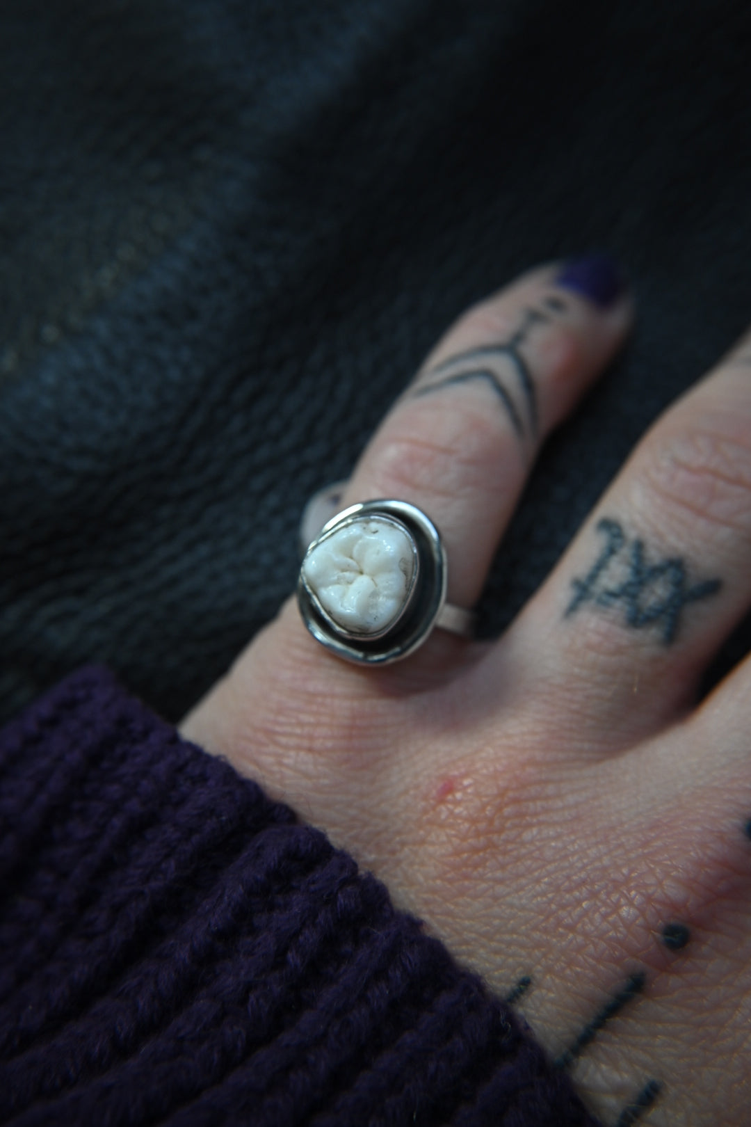100% fine and sterling silver with added patina to bring out the details of each piece